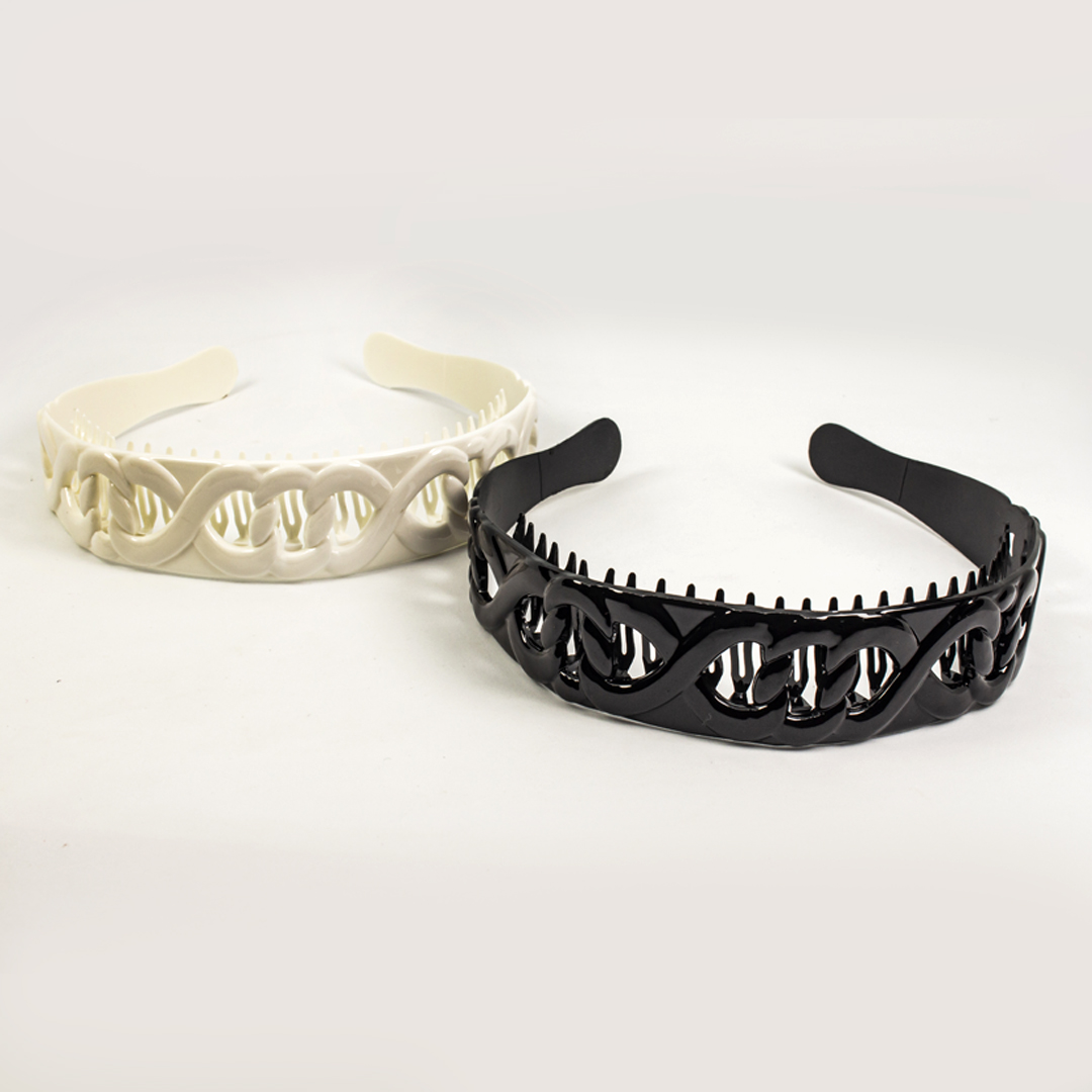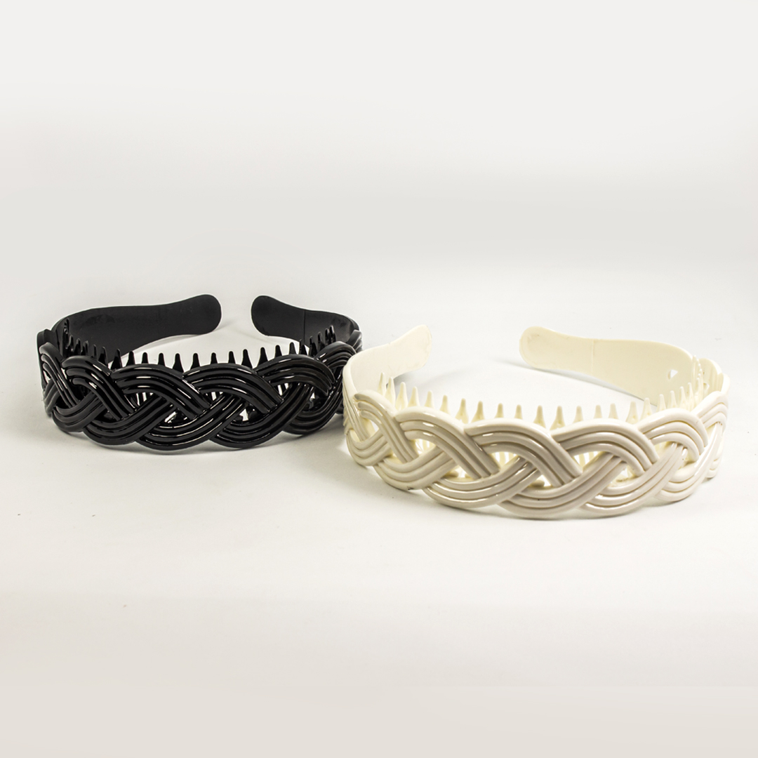 Cintillo Ancho Gravado Con Peineta Blanco – NegroDocena $21.600