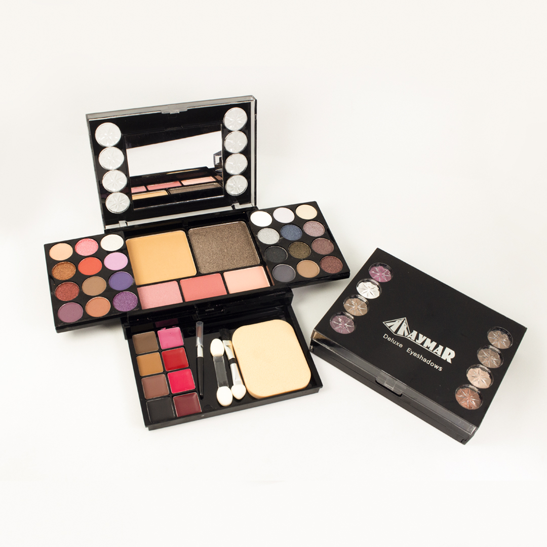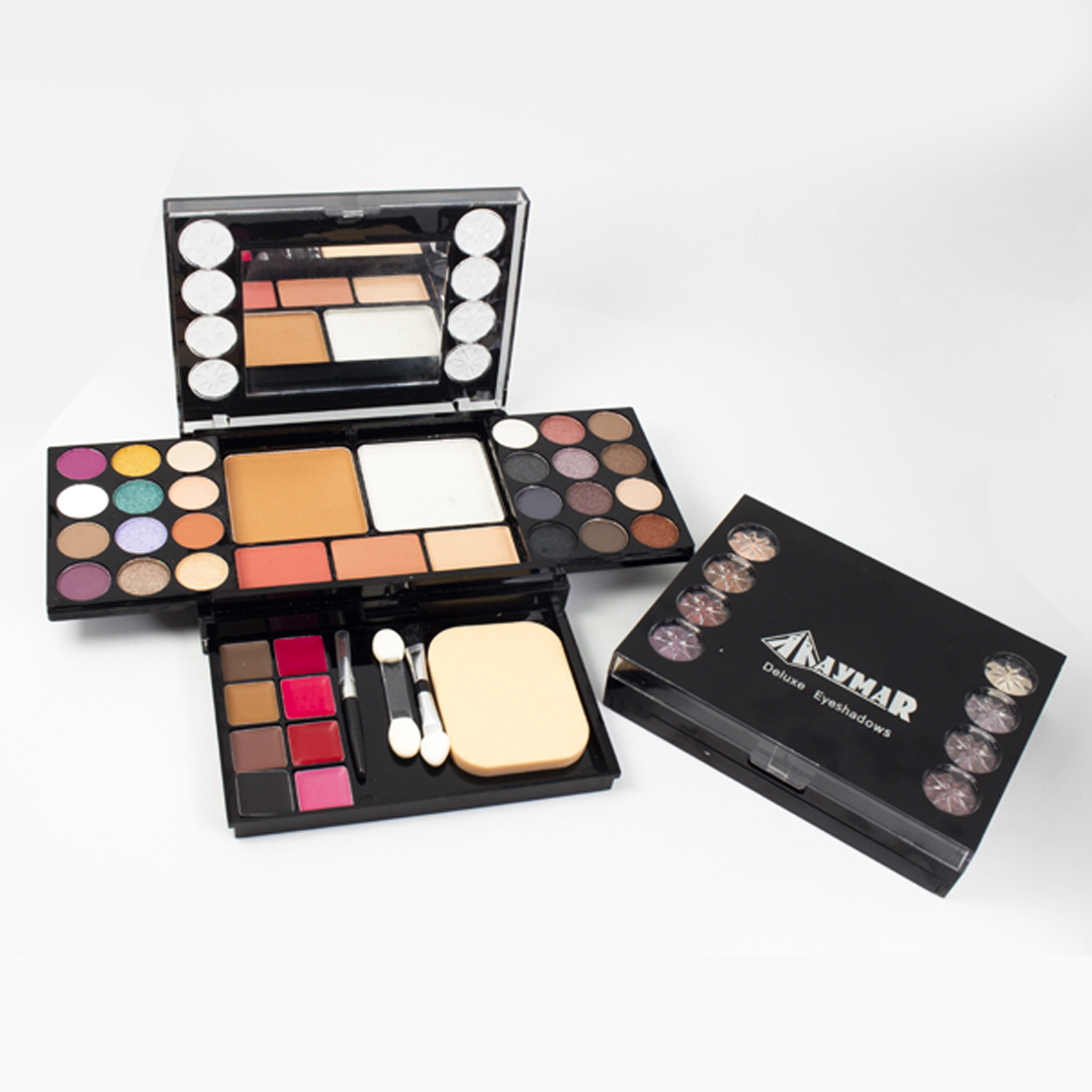 Sombra nacarada paleta por 24 colores tonos surtidos incluye rubor, labial, betún de cejas, polvo compacto